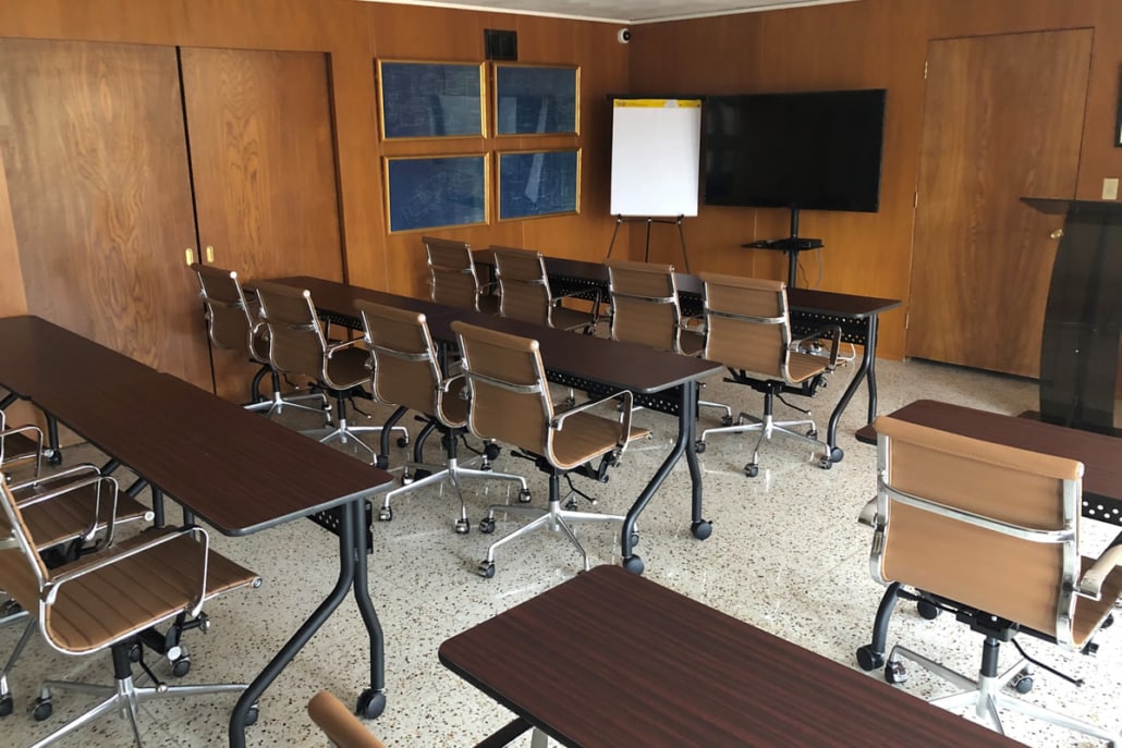 - Podium, 1G Fiber WIFI, Full AV set up, White Board and all presentation materials are onsite and provided free of charge.